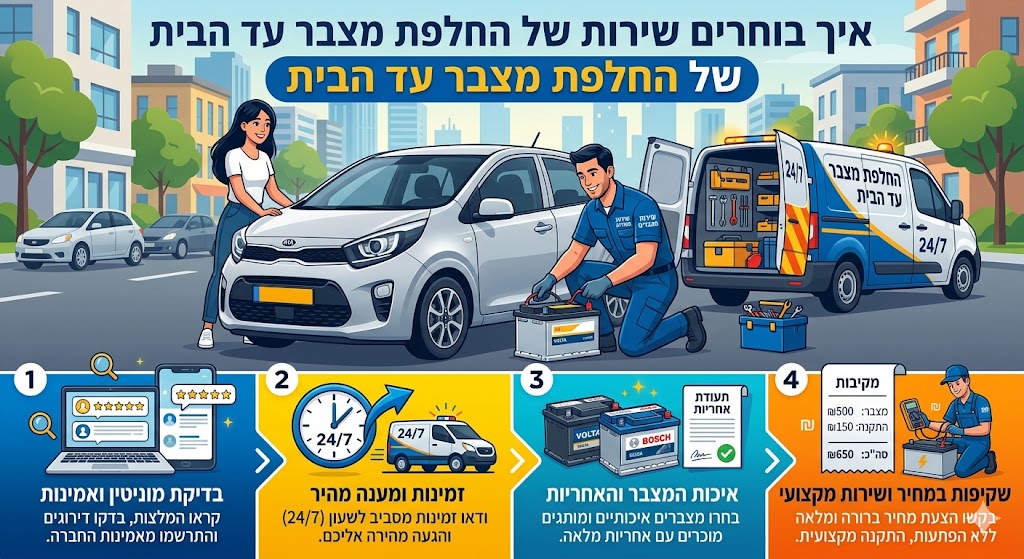 בחירת שירות החלפת מצבר עד הבית ברמת גן מתבססת על חמישה פרמטרים מרכזיים. הפרמטרים הם זמינות מיידית והגעה מהירה, הצעת מחיר שקופה הכוללת את כל עלויות ההתקנה, אספקת מוצר ממותג מוכר יחד עם תעודת אחריות מודפסת, ביצוע בדיקת מערכת החשמל ברכב לפני פירוק החלק הישן, וצוות מקצועי בעל מוניטין חיובי ומוכח. זו השורה התחתונה שאתם חייבים לדעת לפני שאתם מחליטים למי להתקשר ברגע האמת.